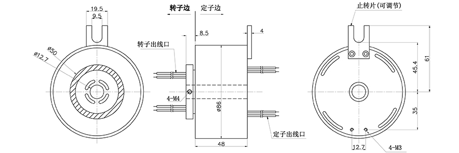 1、不損傷導線360°無限製旋轉傳輸數據信號;