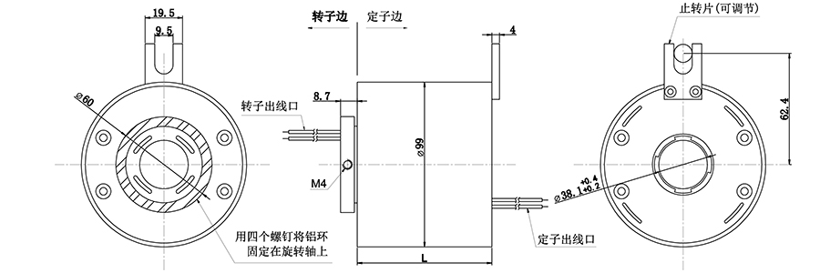 1、不損傷導線360°無限製旋轉傳輸數據信號;